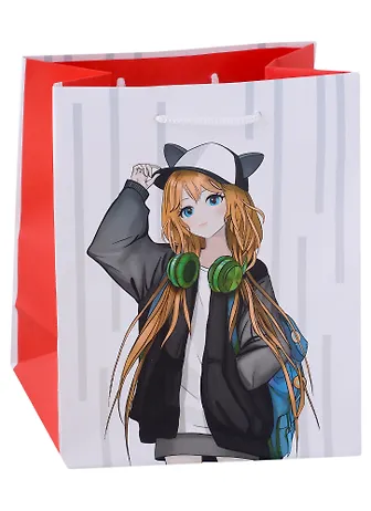 Пакет А5 22*18*10 "Аниме. Девочка в кепке-кошке" дет., бум.мат.ламинат