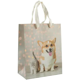 Приобрела этот пакет сразу в нескольких размерах, обычно презентую игрушки в пакетах поменьше, но иногда нужно более вместительные и не всегда удаётся найти то, что нужно. Хотелось именно неброское, в пастельных тонах и нехлипкое, а тут кроме всех этих пунктов еще и замечательная картинка с корги и котёнком. Для меня это было просто идеально! Думаю, что можно докупить ещё, не хочется вернуться за ещё одним и обнаружить, что их раскупили)