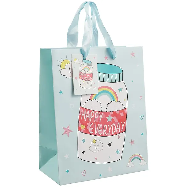 Красивый, удобный, небольшой подарочный пакет. Понравился тем, что подойдет в качестве уковки подарка на любой праздник, и отлично подойдет как мужчине, так и женщине (и даже ребенку). Пакет выполнен из очень прочного картона, выдержит даже довольно тяжелый подарок. Ручки сделаны их тесьмы, довольно длинные, но при необходимости можно укоротить самостоятельно. И к тому же пакет не дорогой.