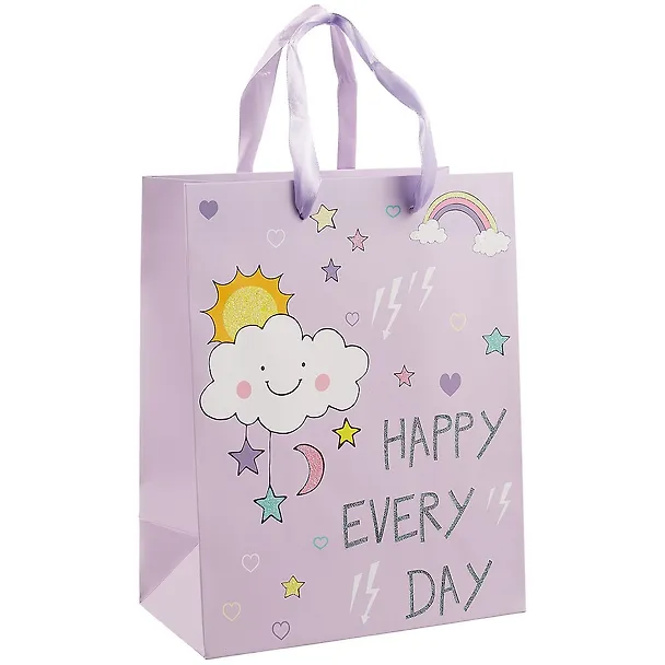 Симпатичный подарочный пакет, идеально подойдет в качеству упаковки подарка для ребенка. Размер у пакета не большой, при этом он не широкий, поэтому крупный подарок уже не положишь. Пакет крепкий, плотный, ручки не длинные, при необходимости можно изменить длину. Рисунок на пакете детский, для взрослого не подойдет. Зато расцветка универсальная, подойдет как девочке, так и мальчику.