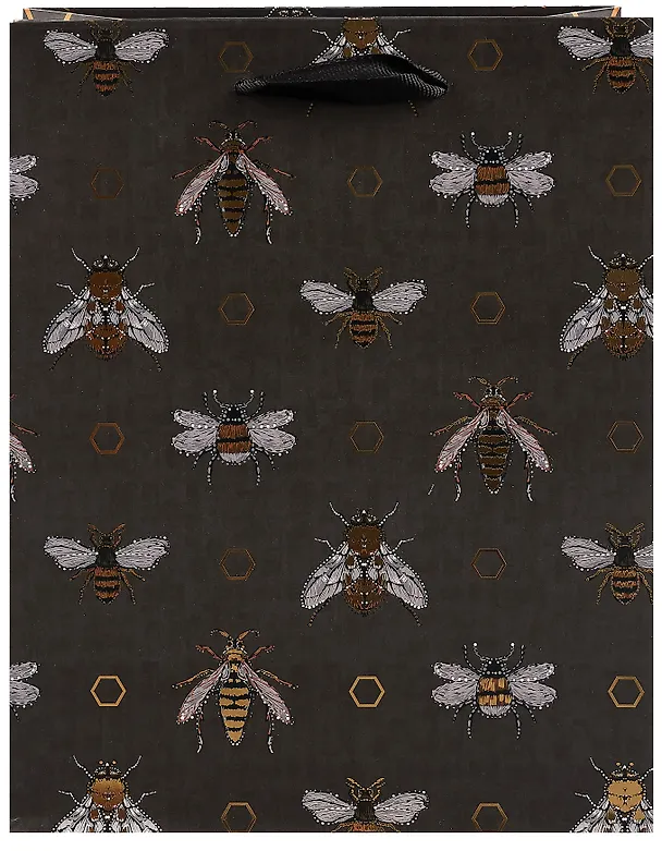 Здоровский принт (довольно-таки неординарный за счет тематики с насекомыми, в данном случае - просто идеально подошел для подарка!). Прочный и качественный картон (выдержал наполнение в виде мягкой игрушки, свечки и всякой мелочовочки разного веса), ручки тоже достаточно прочные и вся подарочная атрибутика внезапным образом не окажется за пределами пакетика уж точно! :)