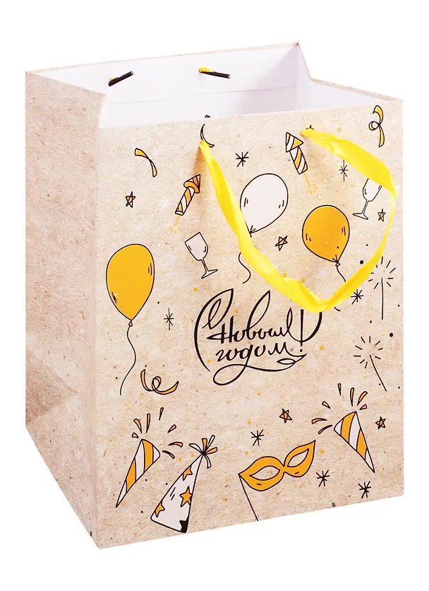 Пакет бумажный подарочный, эффект: матовая ламинация, тиснение фольгой. Новый год. Размер 20 x 24 x 11,5 см