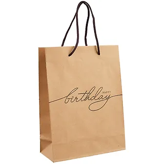 Подарочный Пакет. Подарочный пакет формата А5 . Подарочный пакет под названием "Happy birthday", что значит по русскому языку с днём рождения. Подарочный пакет сделан из бумаги крафт, подарочный пакет нейтрального цвета. Надпись на подарочном пакете написана каллиграфическим почерком ,что очень красиво и аккуратно смотрится со стороны