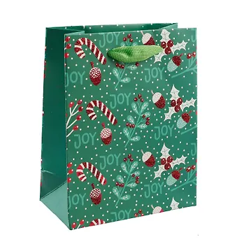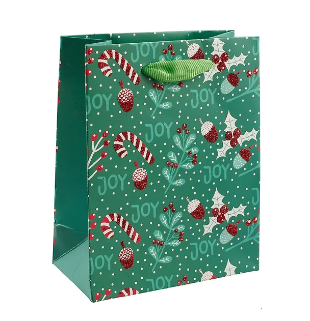 Сделала тут полезное приобретение перед праздниками: маленький, но аккуратный подарочный пакетик. Много сюда не влезет, однако уже есть идеи, что и как упаковать. Цвета истинно новогодне-рождественские, зелёный, красный и белый, чудесное сочетание и просто прекрасный узор из праздничных же атрибутов. С одной стороны пакета конфеты и ягодки покрыты толстым слоем блёсток. Смотрится шикарно, хотя жаль, что только с одной стороны, плюс другая оказалась в сложенном состоянии весьма помята.