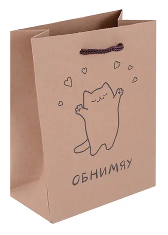 Пакет А6 16*12*6 "Обнимяу" крафт, женск.