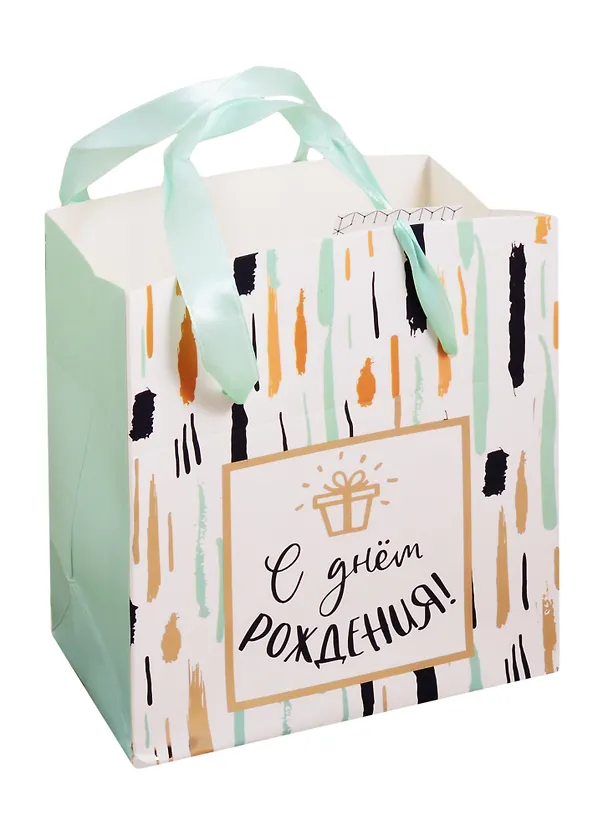 Пакет А6+ 11*15*9 "С Днём Рождения" нейтр., бум.мат.ламинат