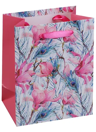 Пакет А6 11*14*6.5 "Перья в цветах" женский, бумажный матовый ламинат