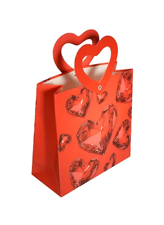 Пакет бумажный Сердечки белый красные сердечки (003209) (22х22х9)