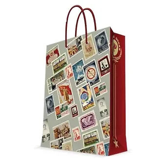 Бумажный пакет для сувенирной продукции "ПОЧТОВЫЕ МАРКИ" арт.39662/12 (26*32,4*12,7см, с ламинацией, с шириной основания 26 см, плотность бумаги 140 г/м2) / 26*32.4*12.7 арт.39662
