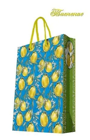 Бумажный подарочный пакет "ЛИМОНЫ" размером 26*32,4*12,7 см изготовлен из плотной бумаги. Плотность бумаги 250 г/м2. Дно укреплено картоном, который позволяет сохранить форму пакета и исключает возможность деформации дна под тяжестью подарка. Пакет выполнен с тиснением и глянцевой ламинацией, что придает ему прочность, а изображению - фактуру, яркость и насыщенность цветов. Для удобной переноски имеются две ручки из шнурков.