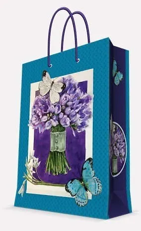 Бумажный подарочный пакет "Сиреневый букет" размером 26*32,4*12,7 см изготовлен из плотной бумаги. Плотность бумаги 140 г/м2. Дно укреплено картоном, который позволяет сохранить форму пакета и исключает возможность деформации дна под тяжестью подарка. Пакет выполнен с глянцевой ламинацией, что придает ему прочность, а изображению - яркость и насыщенность цветов. Для удобной переноски имеются две ручки из шнурков.