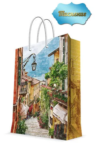 Бумажный подарочный пакет "Итальянский дворик" для сувенирной продукции размером 17,8х22,9х9,8см, изготовлен из плотной бумаги. Плотность бумаги 250 г/м2. Дно укреплено картоном, который позволяет сохранить форму пакета и исключает возможность деформации дна под тяжестью подарка. Пакет выполнен с тиснением и ламинацией, что придает ему прочность, а изображению - объем, фактуру, яркость и насыщенность цветов. Для удобной переноски имеются две ручки из шнурков.