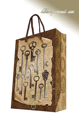 Бумажный подарочный пакет "КЛЮЧИ" для сувенирной продукции размером 17,8х22,9х9,8см, изготовлен из плотной бумаги. Плотность бумаги 250 г/м2. Дно укреплено картоном, который позволяет сохранить форму пакета и исключает возможность деформации дна под тяжестью подарка. Пакет выполнен с выборочным лаком и ламинацией, что придает ему прочность, а изображению - объем, фактуру, яркость и насыщенность цветов. Для удобной переноски имеются две ручки из шнурков.
