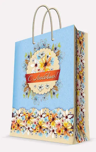 Бумажный подарочный пакет "С ЛЮБОВЬЮ" для сувенирной продукции размером 40,6х48,9х19см, изготовлен из плотной бумаги. Плотность бумаги 157 г/м2. Дно укреплено картоном, который позволяет сохранить форму пакета и исключает возможность деформации дна под тяжестью подарка. Пакет выполнен с глянцевой ламинацией, что придает ему прочность, а изображению - объем, фактуру, яркость и насыщенность цветов. Для удобной переноски имеются две ручки из шнурков.