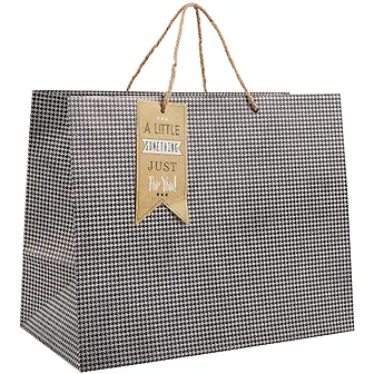 Подарочный пакет с классическим принтом по достоинству оценят модницы и модники любого возраста.