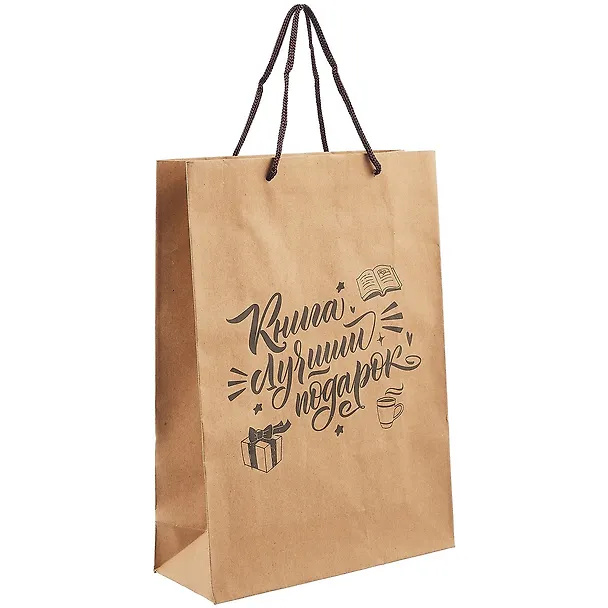 Пришёл хорошо запакованным, яркий принт. Сделан из так называемой "крафтовой бумаги". Приятный на ощупь. С прекрасной надписью для книголюбов. Все отлично, закажу ещё на подарок пару таких. Хотелось бы более крепкие ручки. А также он легко рвётся. Но думаю это не помеха, если быть аккуратным.