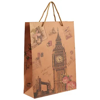 Пакет для подарка из крафтовой бумаги с символами британской столицы понравится тем, кто мечтает посетить Лондон.