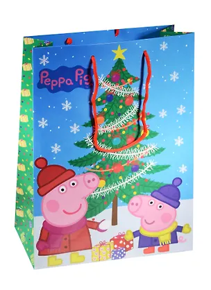 Яркий подарочный пакет «Пеппа зимой» с очаровательными героями мультфильма «Свинка Пеппа» празднично украсит ваш новогодний подарок. Размер бумажного пакета: 35х25х9 см. В ассортименте вы также сможете найти такой же пакет размером 23х18х10 см.