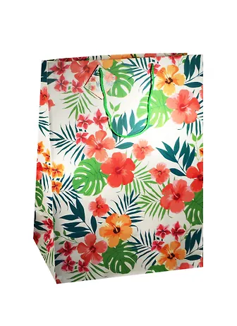Пакет подарочный бумажный А2 42*59*12 "Тропические цветы",жен., белый, мат. ламинат, Хансибэг
