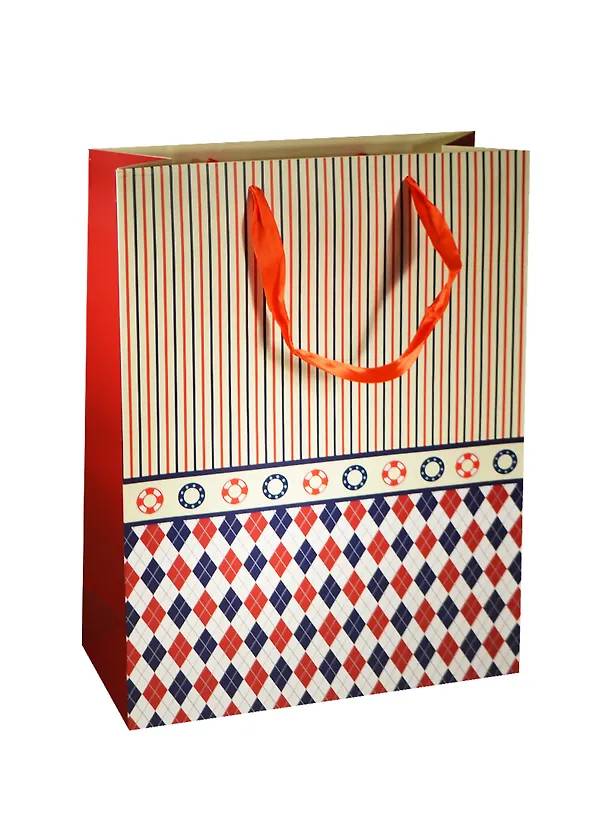 Пакет подарочный бумажный А3 31*42*12 "Ромбы с полоской",нейтральный, разноцветный, матовый ламинат, Хансибэг