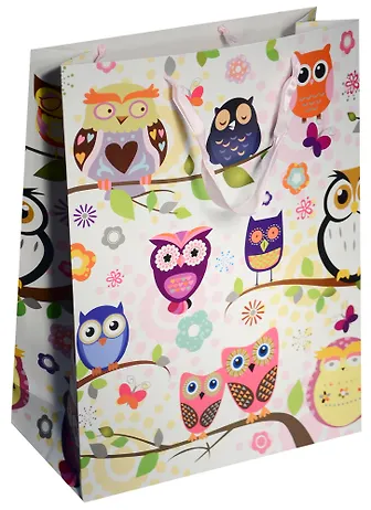 Пакет подарочный бумажный А3 42*32*11.5 "Cовы. Owls на ветке", дет., мат. ламинат, Kairui