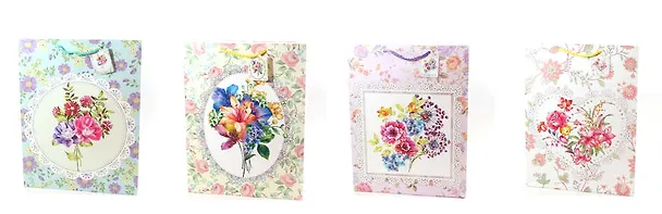 Пакет подарочный бумажный А3 42*32*11.5 "Цветы и кружева", жен., мат. ламинат, Kairui
