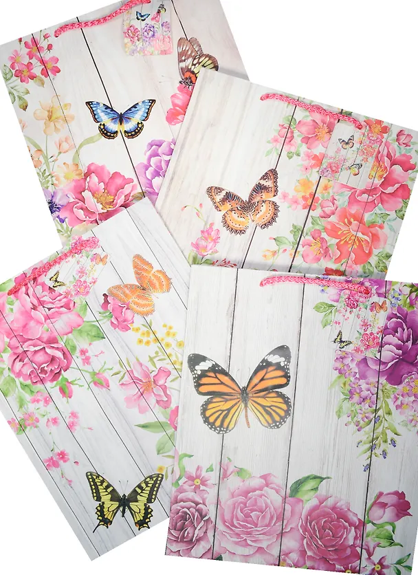 Пакет подарочный бумажный А4 26*32*12.5 "Бабочки и цветы", жен., мат. ламинат, Kairui