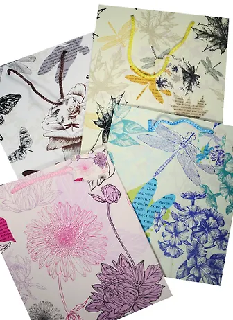 Пакет подарочный бумажный А4 26*32*12.5 "Цветы и стрекозы", жен., мат. ламинат, Kairui