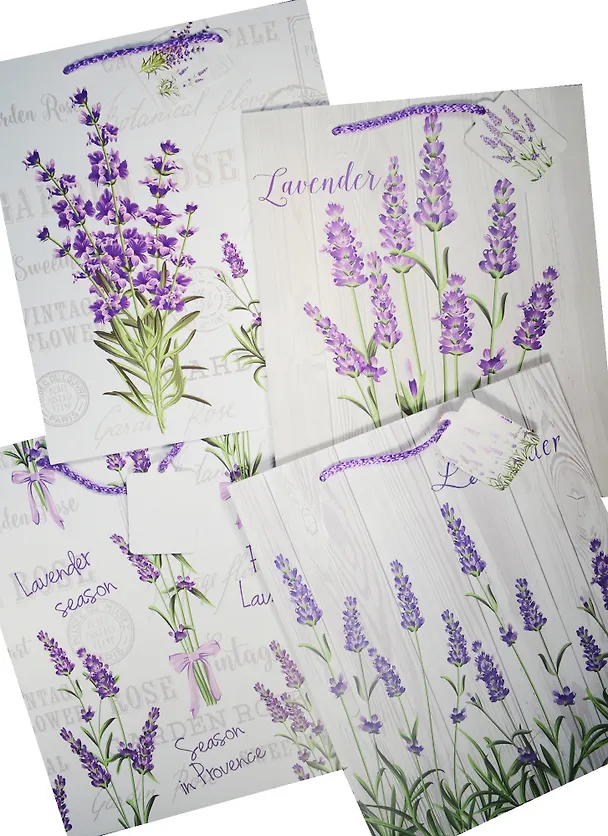 Пакет подарочный бумажный А4 26*32*12.5 "Lavender is love", жен., мат. ламинат, Kairui