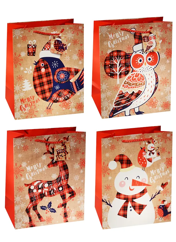 Пакет подарочный бумажный А4 26*32*12.5 "Печворк. Новый год", Новый год, мат. ламинат, Kairui