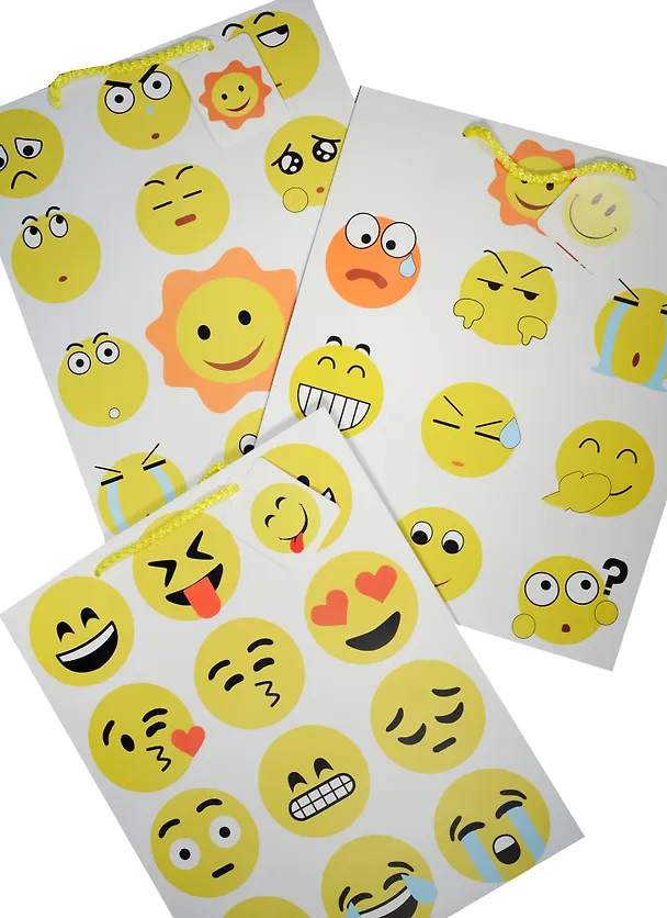 Пакет подарочный бумажный А4 26*32*12.5 "Смайлы", нейтральный, матовый ламинат, Kairui