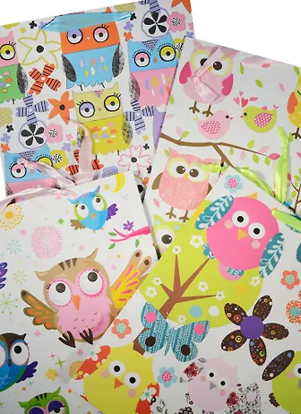 Пакет подарочный бумажный А4 26*32*12.5 "Такие разные совы", дет., мат. ламинат, Kairui