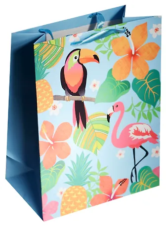 Пакет подарочный бумажный А4 26*32*12,5 "Тропические птицы", дет., мат. ламинат, Kairui
