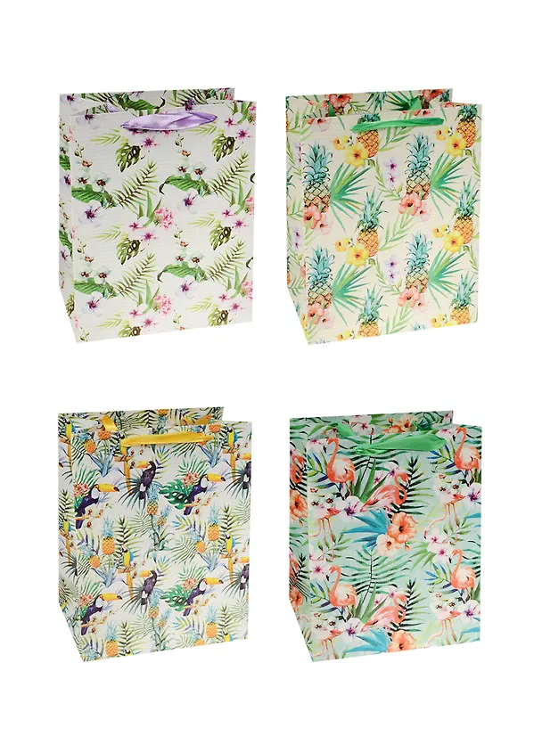 Пакет подарочный бумажный А4 26*32*12,5 "Тропические растения", жен., мат. ламинат, Kairui
