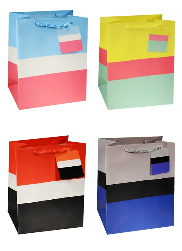 Пакет подарочный бумажный А4 26*32*12.5 "Яркие полосы", нейтральный, матовый ламинат, Kairui