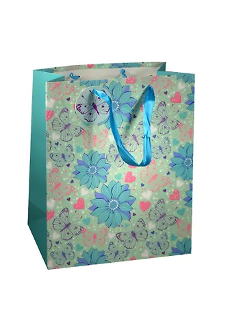 Пакет подарочный бумажный А4 26*32*12 "Бирюзовые бабочки", женский, разноцветный, матовый ламинат, Хансибэг