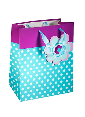 Пакет подарочный бумажный А4 26*32*12 "Горошек", с декор. цветком, бирюзовый, Хансибэг