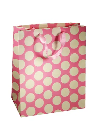 Пакет подарочный бумажный А4 26*32*12 "Крупный горох на розовом",жен., розовый, мат. ламинат, Хансибэг