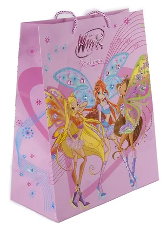 Пакет подарочный бумажный 26*32,4*12,7см, стразы, WINX .