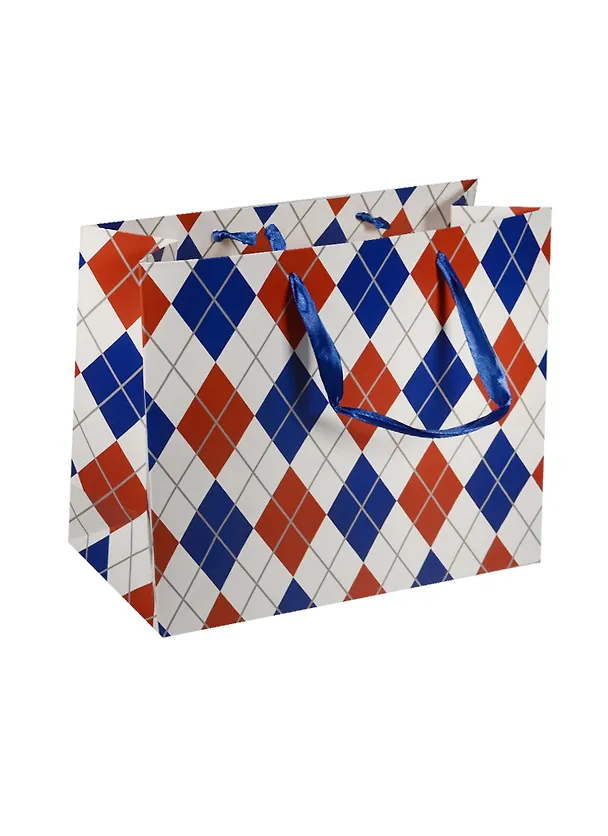 Пакет подарочный бумажный А4 31*26*12 "Английский ромб", нейтральный, разноцветный, матовый ламинат, Хансибэ