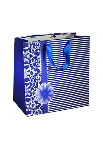 Пакет подарочный бумажный А4 34*34*12 "Полоски синие", мат. ламинат, Хансибэг
