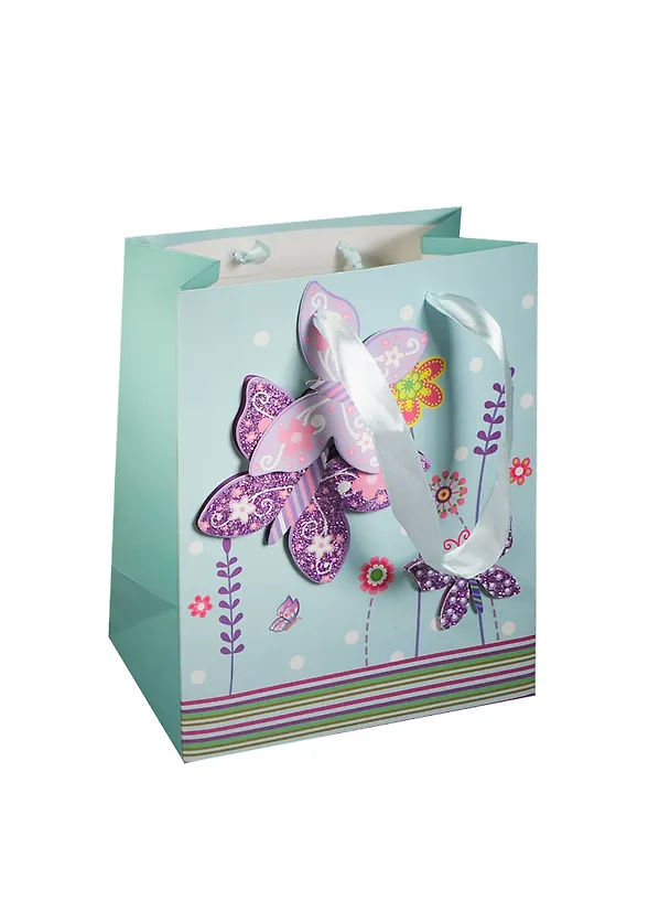 Пакет подарочный бумажный А5 18*23*10 "Бабочки", ассорти, мат. ламинат, Хансибэг