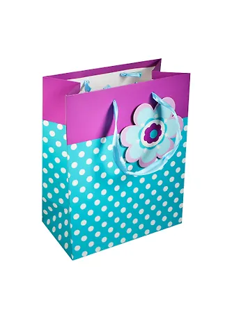 Пакет подарочный бумажный А5 18*23*10 "Горошек", с декор. цветком, бирюзовый, Хансибэг