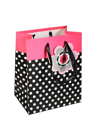 Пакет подарочный бумажный А5 18*23*10 "Горошек", с декор. цветком, черный, Хансибэг