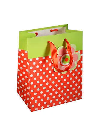 Пакет подарочный бумажный А5 18*23*10 "Горошек", с декор. цветком, красный, Хансибэг