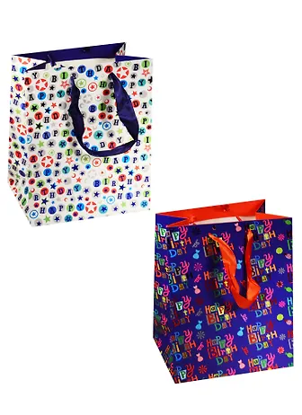 Пакет подарочный бумажный А5 18*23*10 "Happy birthday микс", нейтр, ламинат, Хансибэг