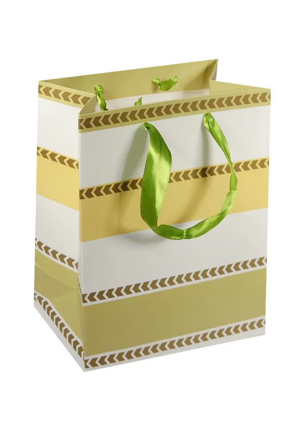 Пакет подарочный бумажный А5 18*23*10 "Полоски с золотым вензелем",нейтр., мат. ламинат, Хансибэг