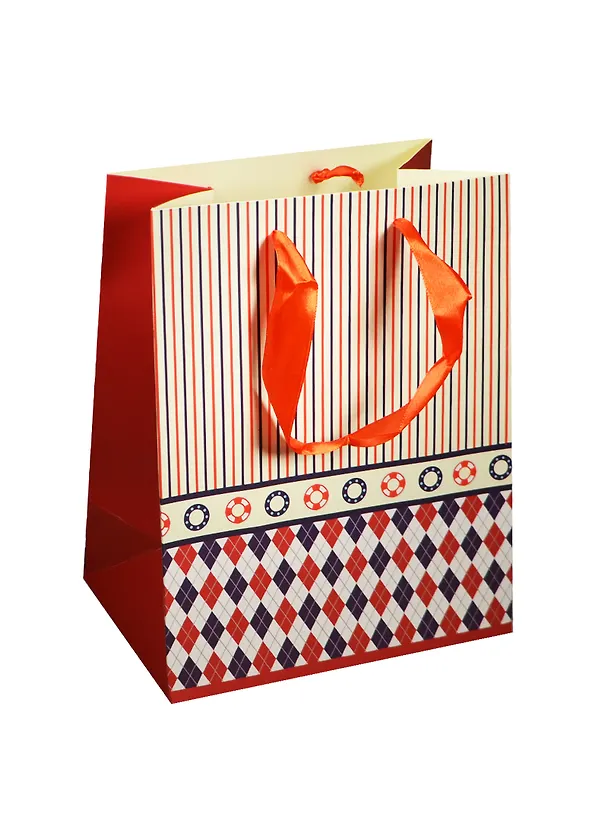 Пакет подарочный бумажный А5 18*23*10 "Ромбы с полоской",нейтр., разноцвет., мат. ламинат, Хансибэг
