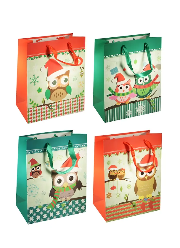 Пакет подарочный бумажный А5 18*23*10 "Совы. Owls новогодний", Новый год, мат. ламинат, Хансибэг