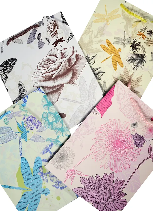Пакет подарочный бумажный А5 23*18*10 "Цветы и стрекозы", жен., мат. ламинат, Kairui